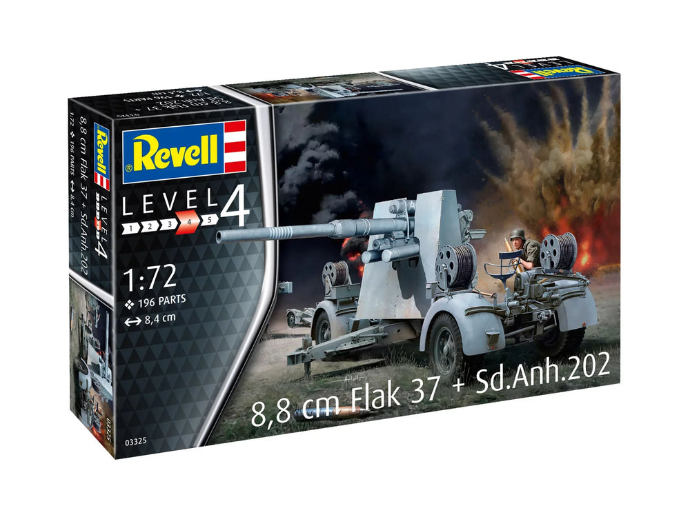 Entdecken Sie den präzise gefertigten Modellbausatz der 8,8 cm Flak 37 samt Sd.Anh.202 im beeindruckenden Maßstab 1:72. Mit insgesamt 196 Teilen bietet dieser Bausatz eine herausragende Detailtreue und vermittelt ein authentisches Bau- und Spielerlebnis. Die Abmessungen des fertigen Modells – eine Länge von 84 mm, eine Breite von 80 mm und eine Höhe von 49 mm – machen es zu einem exquisiten Ausstellungsstück für jede Sammlung.