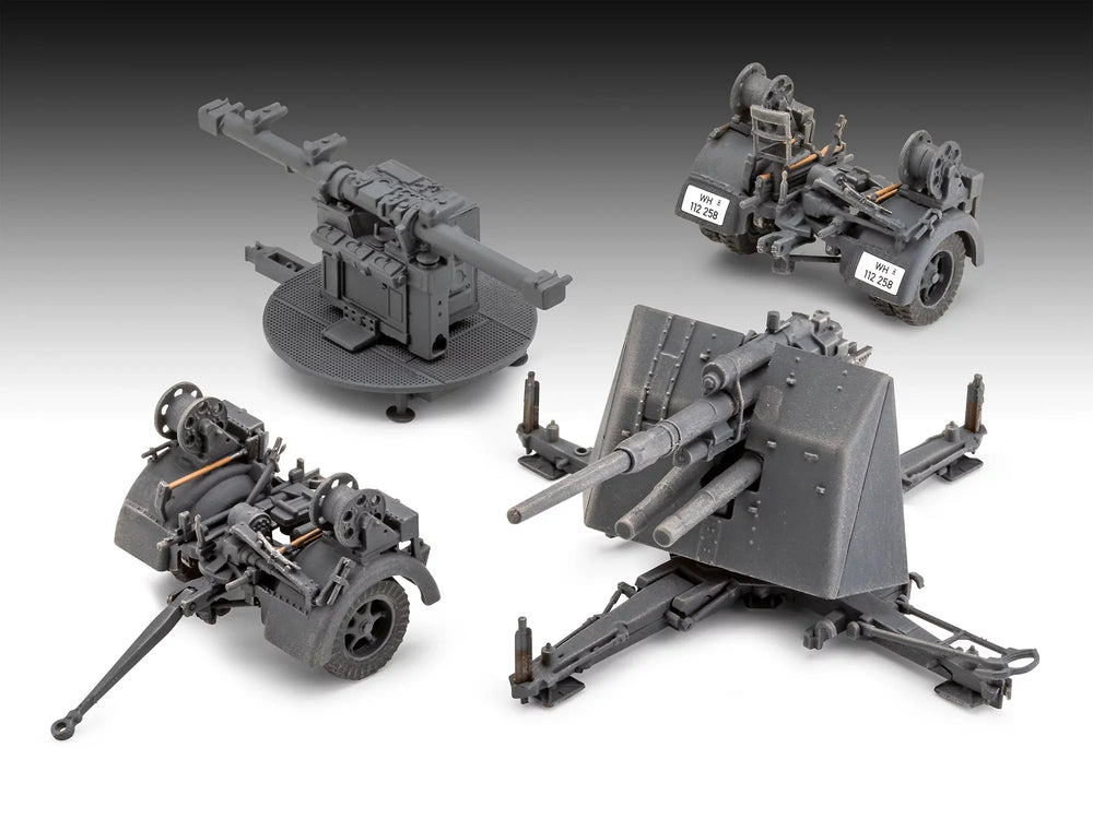 Die 8,8 cm Flak 37, ergänzt durch den Sd.Anh.202, spielte eine zentrale Rolle in den Verteidigungsstrategien des Zweiten Weltkriegs. Ursprünglich als Flugabwehrkanone konzipiert, erwies sie sich dank ihrer hohen Durchschlagskraft und Präzision auch bei der Bekämpfung von Bodenzielen als äußerst effektiv. Ihre Vielseitigkeit und die Fähigkeit, sowohl in der Flugabwehr als auch in der direkten Bodenunterstützung eingesetzt zu werden, machten die 8,8 cm Flak zu einer legendären Waffe. Mit diesem Modellbausatz können Sie ein Stück Geschichte nachbauen und die Ingenieurskunst und strategische Bedeutung dieser ikonischen Kanone hautnah erleben.