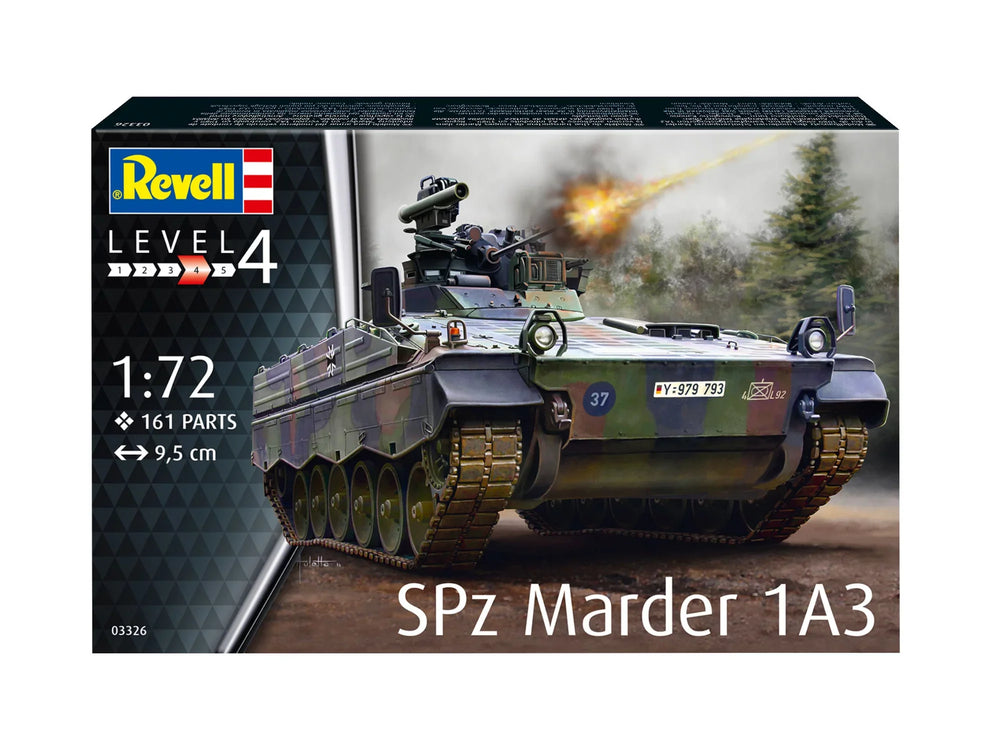 Modellbausatz des modernen Schützenpanzer Marder in der ab 1989 eingeführten, kampfwertgesteigerten 1A3 Variante.