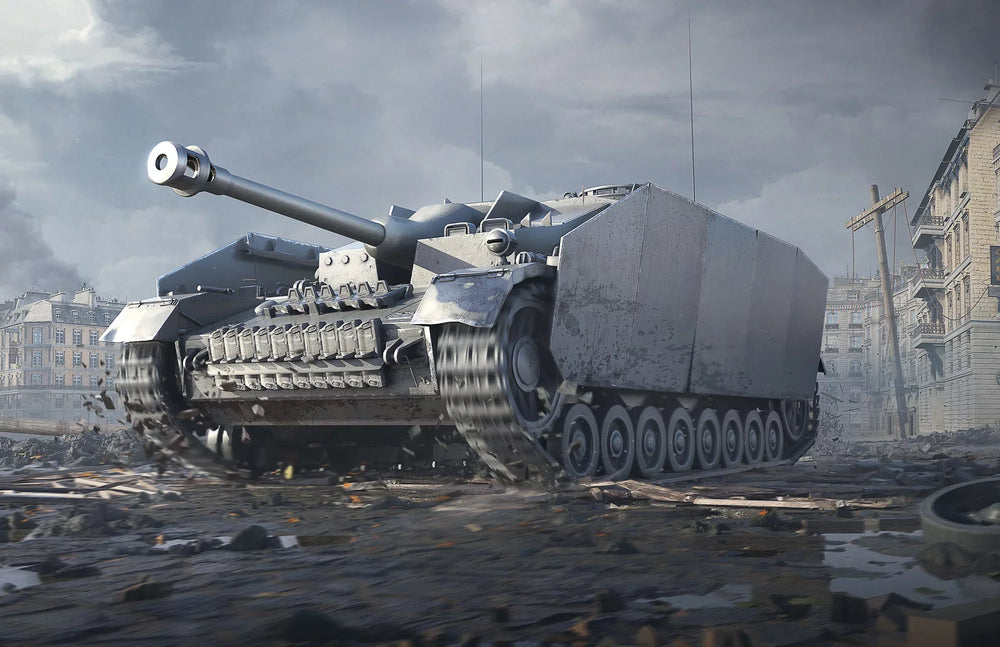 Das Sturmgeschütz IV, kurz StuG IV, war eine deutsche Selbstfahrlafette auf Basis des Panzerkampfwagen IV, entwickelt als direkte Antwort auf die Forderungen des Reichswaffenamts nach einem vielseitigen, bewaffneten Unterstützungsfahrzeug. Mit seiner Produktion, die im Dezember 1943 startete, spielte es eine bedeutende Rolle an der Front durch seine Fähigkeit, feindliche Befestigungen sowie Panzer effektiv zu bekämpfen. Im Spiel „World of Tanks“ repräsentiert es einen deutschen Premium-Jagdpanzer der Stufe 5, was seine historische Bedeutung und taktische Vielseitigkeit unterstreicht. Dieses Modell erweckt nicht nur ein Stück Geschichte zum Leben, sondern ermöglicht es den Bauherren auch, die technische Raffinesse und strategische Bedeutung des Sturmgeschütz IV nachzuvollziehen.