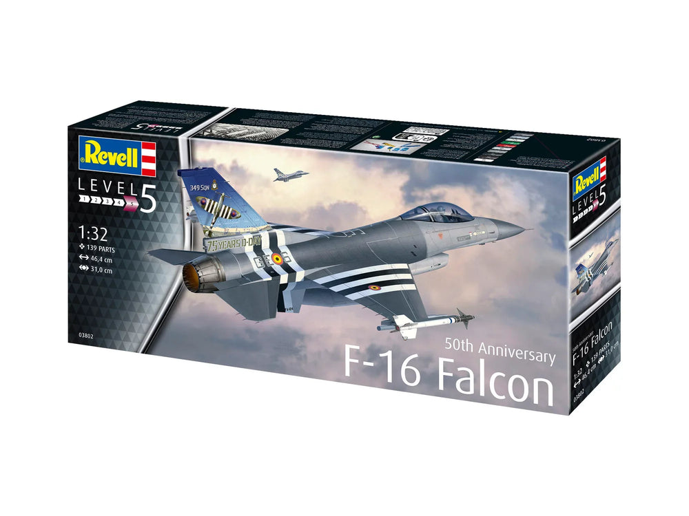 Der 50th Anniversary F-16 Falcon Modellbausatz repräsentiert ein halbes Jahrhundert Luftfahrtgeschichte in einem atemberaubenden Maßstab von 1:32. Mit insgesamt 150 Teilen bietet dieser Bausatz eine herausfordernde und lohnende Erfahrung für Modellbau-Enthusiasten ab 13 Jahren. Erstreckt sich über eine Länge von 453 mm, eine Höhe von 159 mm und eine Spannweite von 295 mm, ist dieser detailreiche Bausatz ein imposantes Modell, das die Macht und Eleganz des F-16 Falcons in jedem Detail einfängt.