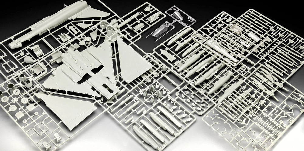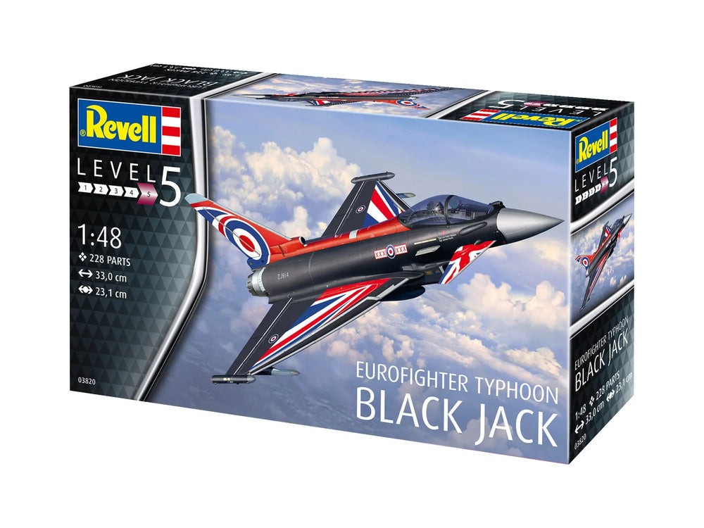 Im Eurofighter Typhoon 'Black Jack' Modellbausatz enthalten sind: ein nicht zusammengebauter Kunststoffmodellbausatz, eine bebilderte, mehrsprachige Bauanleitung und detaillierte Abziehbilder des Black Jack-Designs. Weitere Highlights sind die detaillierten Oberflächenstrukturen, detaillierte Fahrwerkschächte und eine authentische Triebwerksnachbildung.