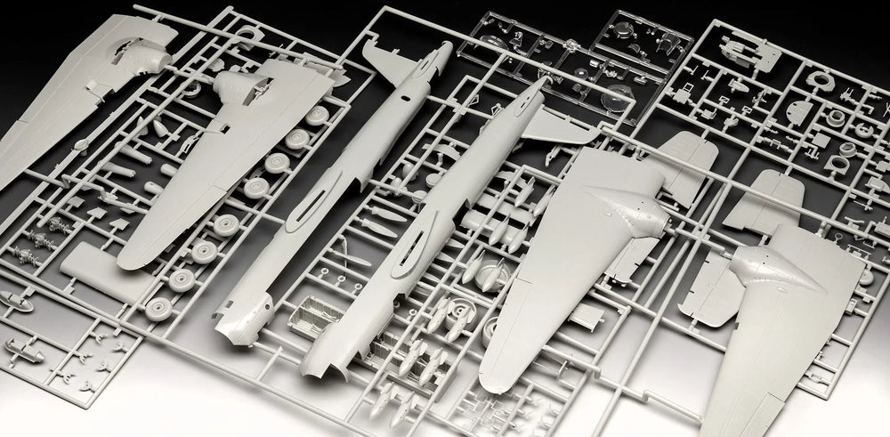 Der Heinkel He177 A-5 Greif Modellbausatz besticht durch seine hohe Detailtreue. Von einem detaillierten Cockpit bis hin zu beweglichen Propellern ist alles dabei. Ein besonderes Highlight sind die drei mitgelieferten Lenkbomben Fritz X sowie die authentischen Abziehbilder, mit denen zwei verschiedene Versionen der Luftwaffe dargestellt werden können.