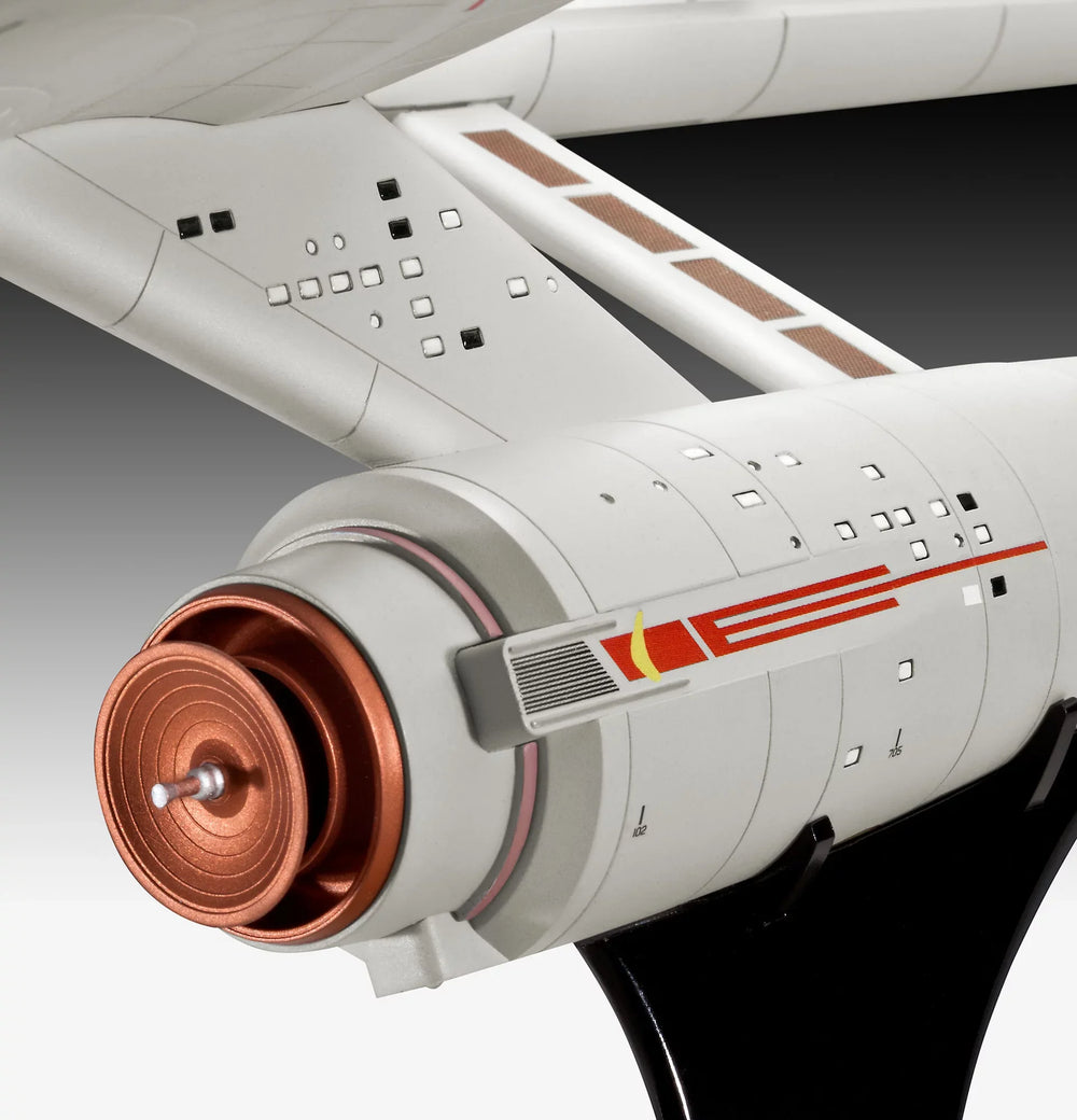 Die U.S.S. Enterprise NCC-1701 ist das Flaggschiff der Sternenflotte und bekannt aus der Original-Star Trek-Serie (TOS), die ihre 5-Jahres-Mission im Jahr 2265 startete. Unter dem Kommando von Captain James T. Kirk und seinem ersten Offizier Spock erkundete die Enterprise Galaxien und drang in Bereiche vor, die nie ein Mensch zuvor gesehen hat. Diese Missionen, geprägt von Entdeckungen, diplomatischen Beziehungen und gelegentlichen Konflikten, etablierten die Enterprise als Symbol für Frieden und Forschung im Star Trek-Universum. Der Modellbausatz der U.S.S. Enterprise NCC-1701 bietet nicht nur eine detaillierte Replik dieses legendären Raumschiffs, sondern lädt auch dazu ein, die Abenteuer und Ideale von Star Trek durch das Modellbau-Hobby zu erleben.