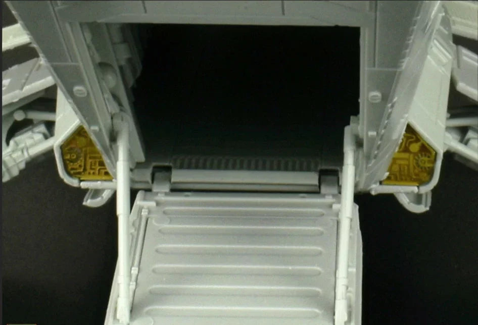 Möglichkeit zur individuellen Gestaltung: Türen und Landerampe können geöffnet oder geschlossen gebaut werden, und die Landebeine sind optional anbringbar. Highlight: Eine detaillierte Pilotenfigur im Cockpit verstärkt das interaktive Spielerlebnis.