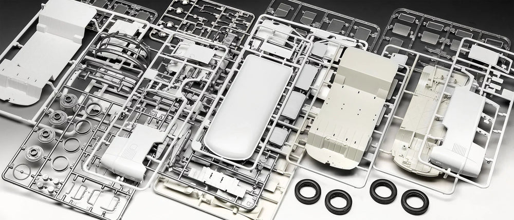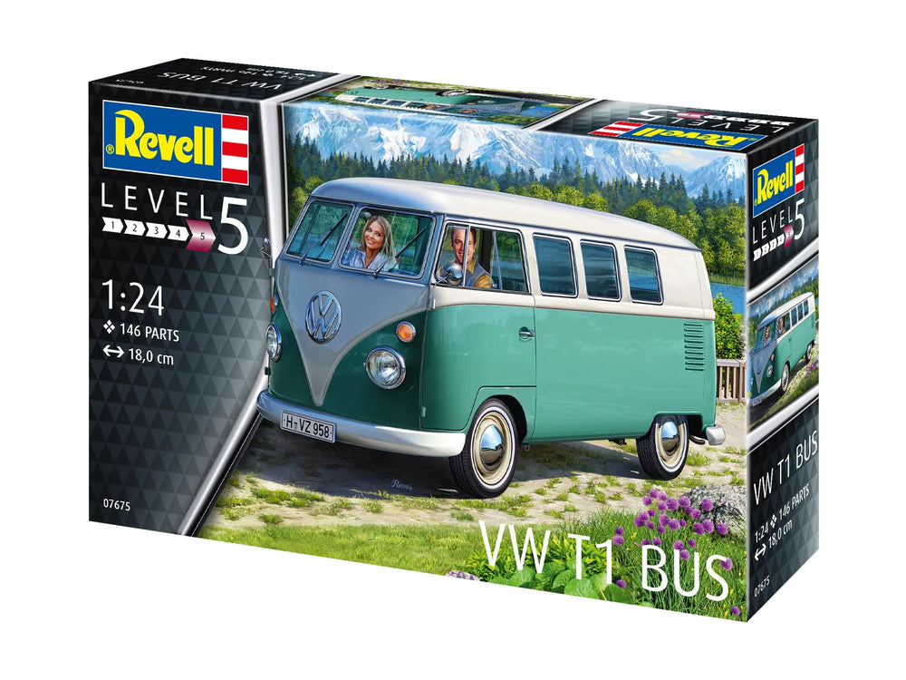 Zum Lieferumfang des VW T1 Bus Modellbausatzes gehört neben dem noch nicht zusammengebauten Modell eine bebilderte, mehrsprachige Bauanleitung und Abziehbilder mit diversen Kennzeichen. Das Set beinhaltet eine mehrteilige Karosserie, eine detaillierte Inneneinrichtung, eine Motornachbildung, drehbare Räder und diverse Chromteile, die dem Modell ein glänzendes, realistisches Aussehen verleihen.