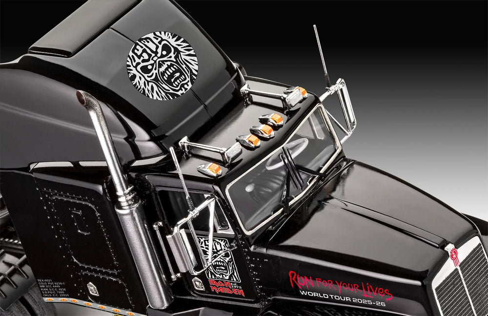 Dieser Modellbausatz ist nicht nur ein beeindruckendes Sammlerstück, sondern auch eine einzigartige Hommage an eine der einflussreichsten Heavy-Metal-Bands aller Zeiten. Jedes Detail wurde sorgfältig gestaltet, um die Ästhetik und den Spirit von Iron Maiden einzufangen. Die Chromteile wie Felgen und Außenspiegel verleihen dem Truck einen hochwertigen Look, während die Abziehbilder die Bühne für einen spektakulären letzten Schliff bereiten. Egal ob auf deinem Regal, Schreibtisch oder in einer Vitrine – dieser Truck wird garantiert zum Highlight deiner Sammlung.