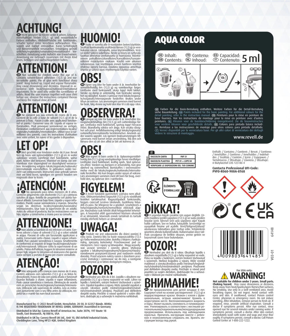 Achtung! Nicht geeignet für Kinder unter 8 Jahren. Lösungsmittelhaltiger Kleber (enthält n-Butylacetat, 12,5 g) und wasserlösliche Farben enthalten. Klebstoffflasche mit funktionaler, scharfer Spitze! Unter Verschluss aufbewahren. Flüssigkeit und Dampf entzündbar. Kann Schläfrigkeit und Benommenheit verursachen. Entsorgung gemäß örtlichen / regionalen / nationalen / internationalen Vorschriften. Benutzung unter Aufsicht von Erwachsenen. Anweisung vor Gebrauch mit ihrem Kind lesen, befolgen und nachschlagebereit halten.