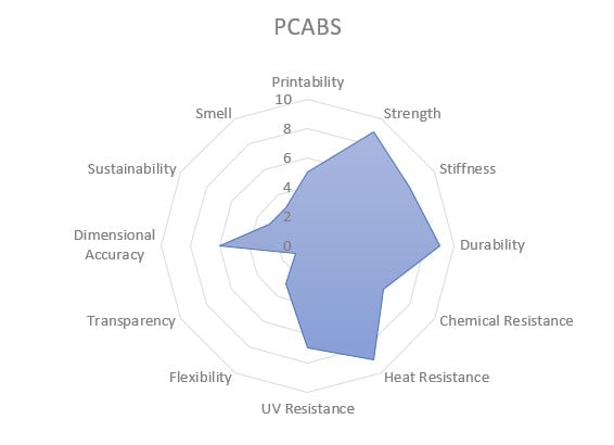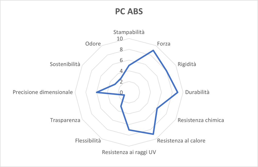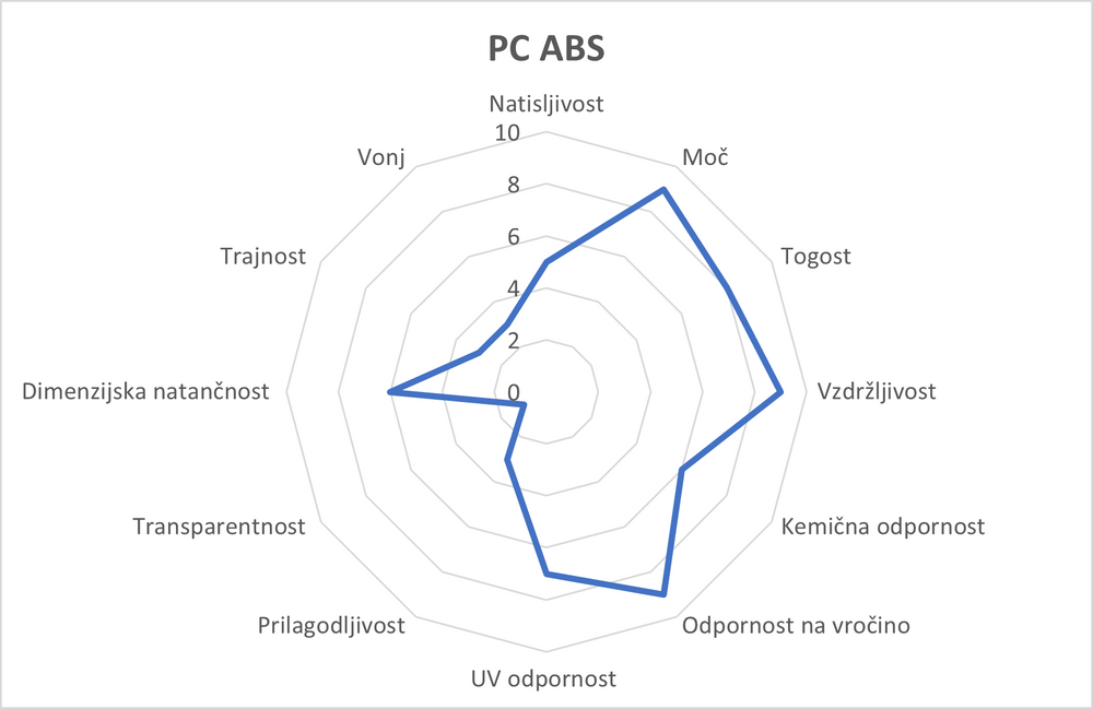 PC ABS filament Natur je izuzetno jak materijal automobilske klase savršen za mehaničke delove i tehničke aplikacije. Dodavanje polikarbonata (PC) u akrilonitril-butadien-stiren (ABS) stvara materijal koji se glatko štampa uz skoro savršenu međuslojnu adheziju. Krajnji rezultat je visoko kvalitetan otisak koji je lagan, izdržljiv i ima glatku površinsku sjaj. Za više informacija o PC ABS filamentima, pročitajte naš blog.