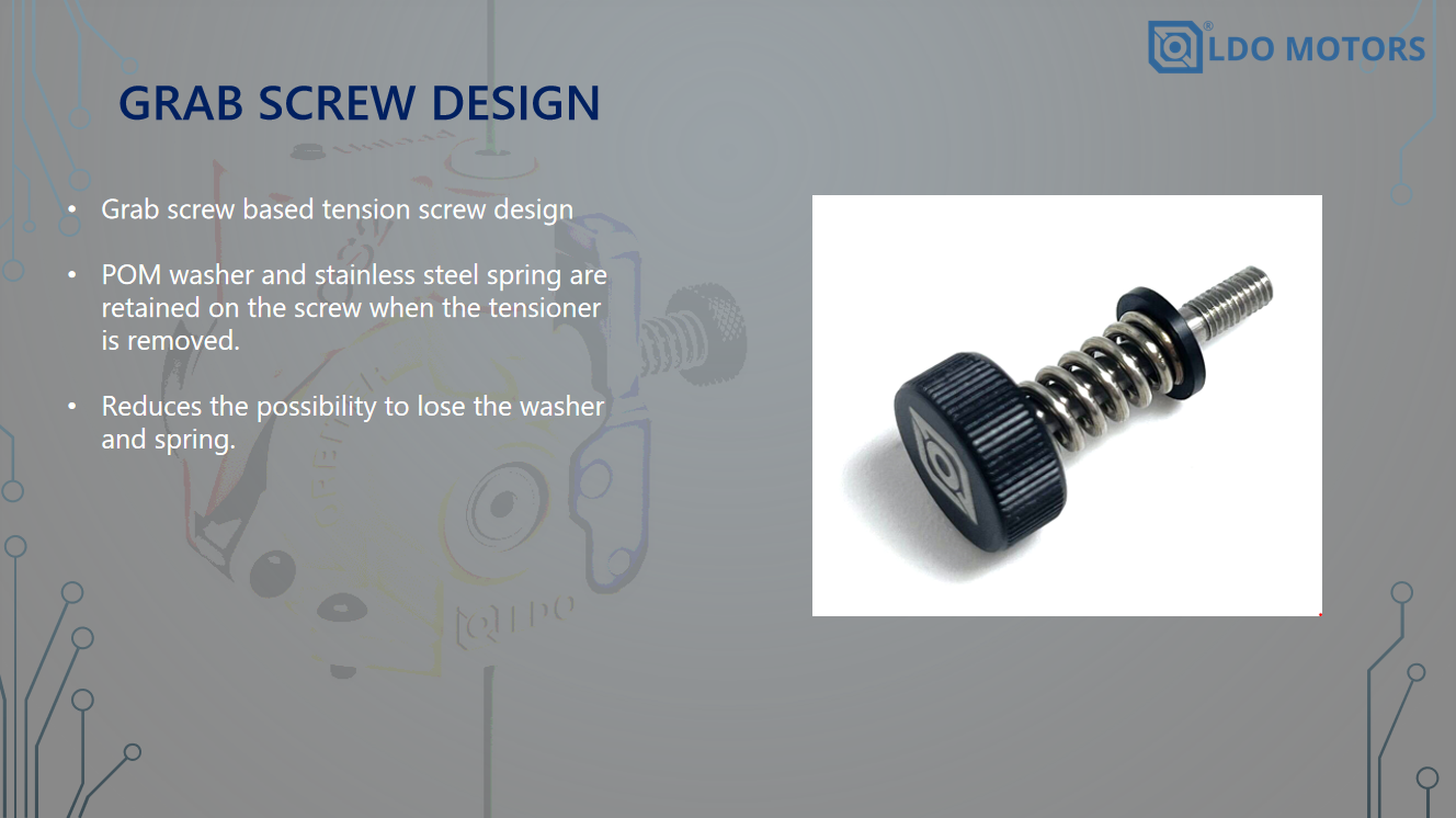 Tension mechanism with grab screw design (Captive Grab Screw): This feature simplifies tension adjustment, making it more user-friendly.