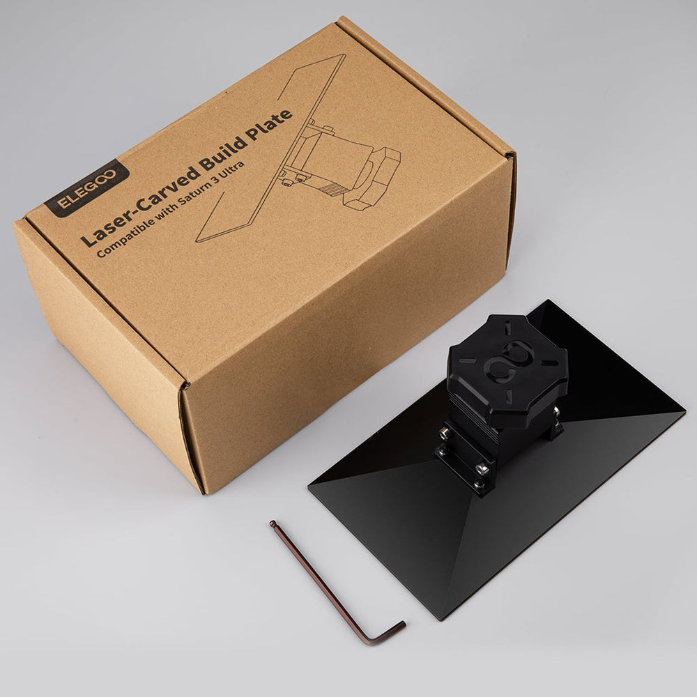 Our build platform has a laser-carved surface, providing increased model adhesion during the printing process and easy to remove models after printing.
