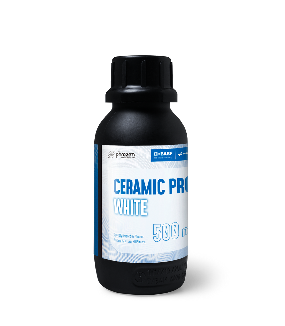 Phrozen has partnered with BASF Forward AM, one of the most prestigious chemical companies, to create our first composite resin. With over 50% ceramic content, it closely resembles an authentic ceramic feel and appearance. Characterized by its durability, precision, and rigidity, Ceramic White Resin is designed to fulfill your needs for highly accurate industrial-grade engineering prototypes and exquisite models.