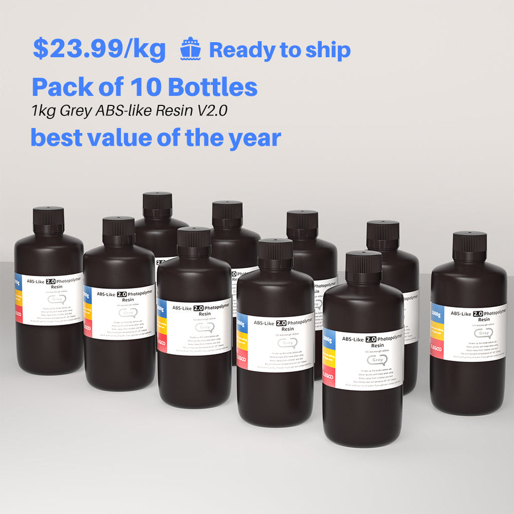 ELEGOO ABS-Like 3D Printer Resin 2.0, 405nm UV-Curing Photopolymer Resin for LCD 3D Printing, High Precision, Good Toughness, Grey, 10KG
