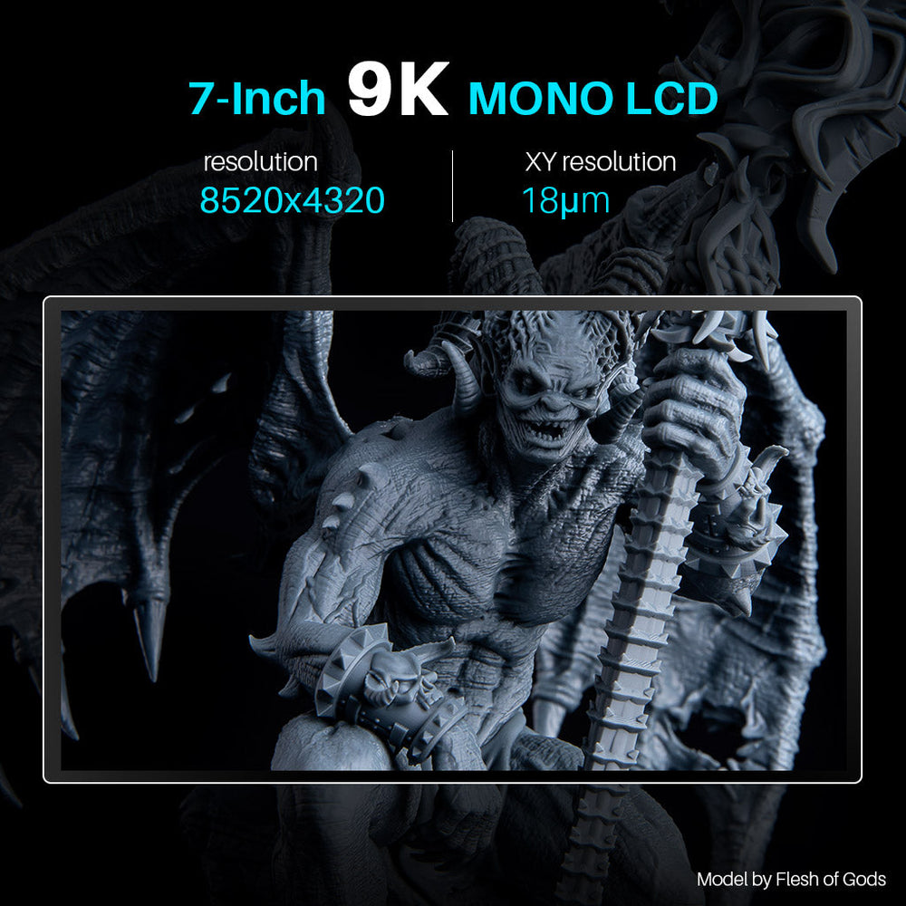 7-Inch 9K Mono LCD: Mars 4 boasts a 7-inch 9K mono LCD that boasts an impressive 8520x4320 resolution and 18μm XY resolution, enabling you to print crisp and intricate models every time with every detail of your model accurately rendered.