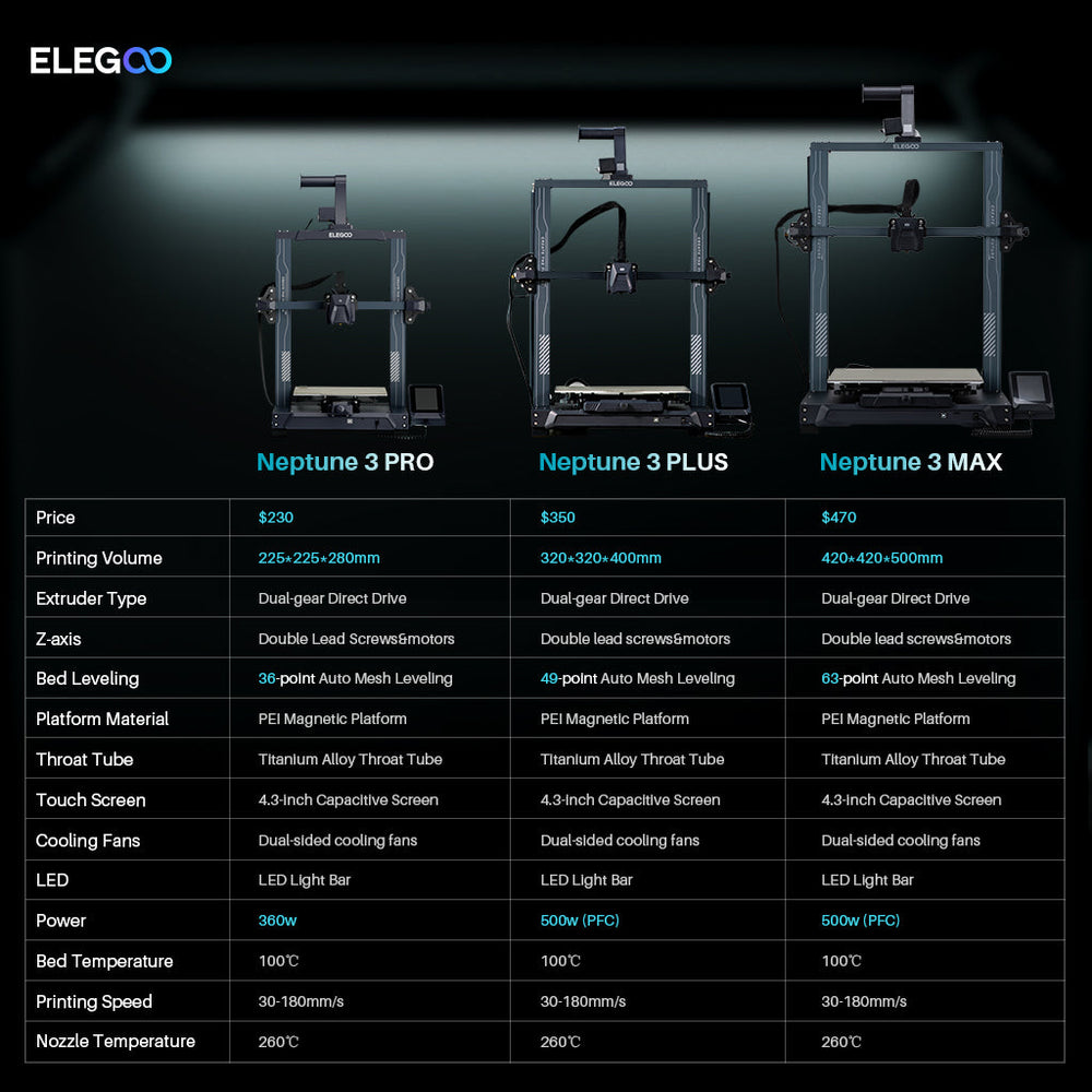 ELEGOO 3D Printer, Neptune 3 Plus FDM 3D Printer with 49-Point Auto Bed Leveling, Dual-Gear Direct Extruder, Ultra-Quiet Printing, Removable Capacitive Screen, Larger Printing Size of 320x320x400 mm / 12.59x12.59x15.74 Inches
