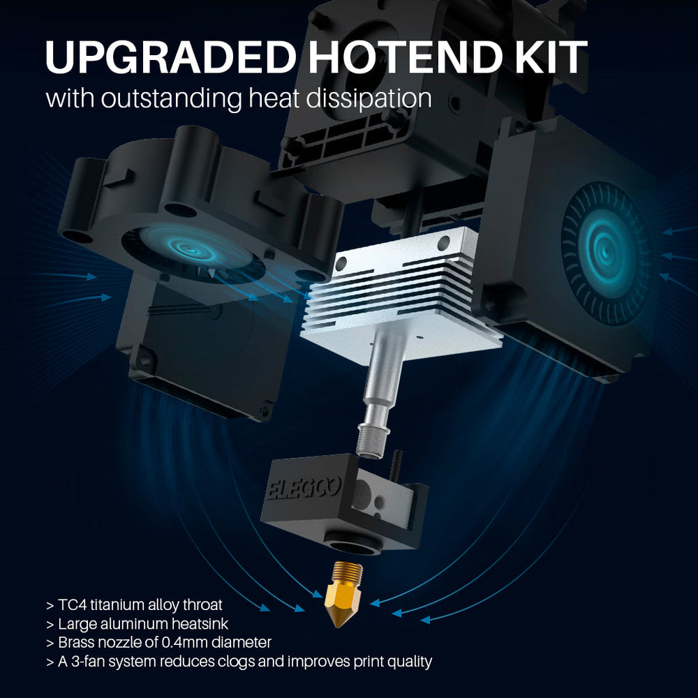 【Dual-Gear Direct Extruder】The new dual-gear direct extruder with a better grip on the filament and strong pushing force for smoother filament feeding and more stable & accurate printing, which greatly reduces the risk of nozzle blockage and under extrusion, and printing well with PLA, ABS, PETG and even flexible filaments like TPU.