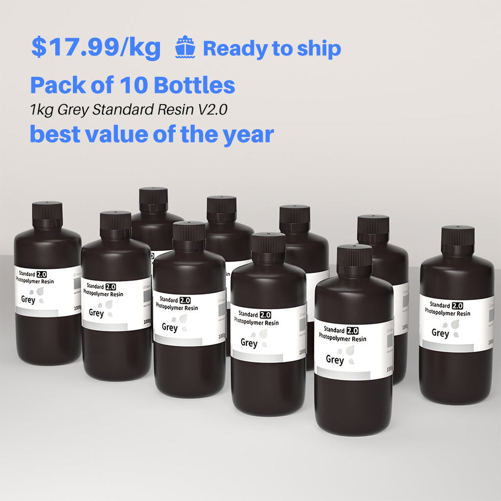 ELEGOO 3D Printer Resin 405nm UV Curing Standard Photopolymer Resin 2.0 for LCD 3D Printing, High Precision, Low Odor, Grey, 10KG