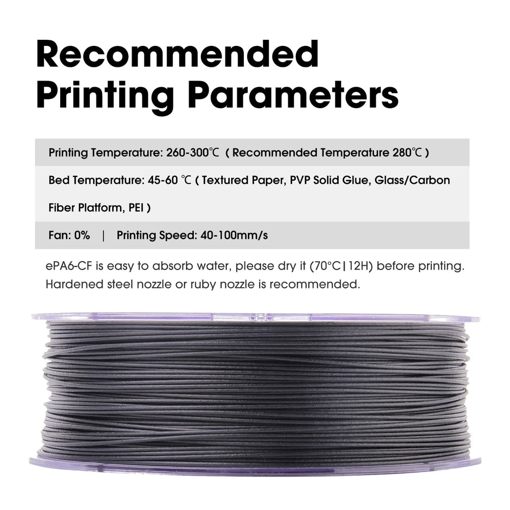 eSUN Refus Carbon Fiber Filled Nylon Filament ePAHT-CF 1.75mm 3D Printer Filament 0.75KG Spool 3D Printing Filament for 3D Printers