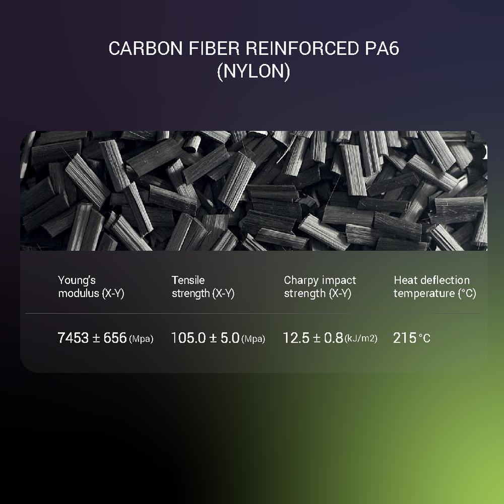 Choose Fiberon™ PA6-CF20 for parts that demand maximum strength, heat resistance, and durability in industrial and engineering environments.