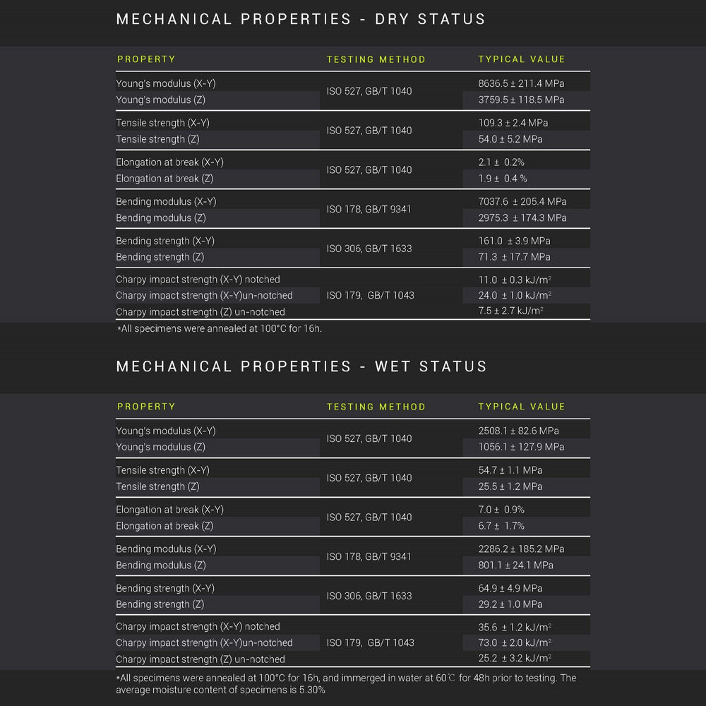 While engineered for high performance, Fiberon™ PA6-CF20 is optimized for reliable printing on advanced FDM/FFF 3D printers equipped with an all-metal hotend and a hardened nozzle due to the abrasive carbon fiber content. Filament drying and post-print annealing are recommended for best results.