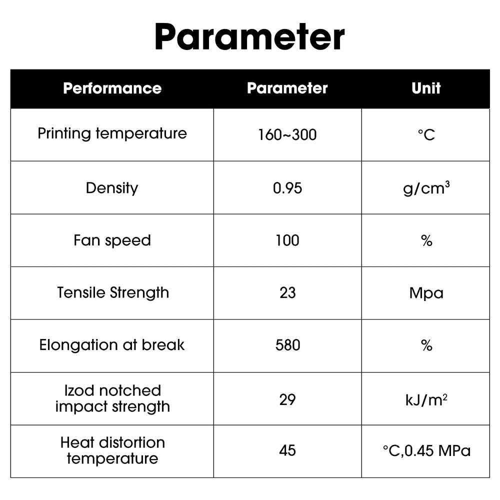 Another great feature is the filaments extremely wide processing temperature of 160°C - 300°C, this coupled with it's ability to remove residual plastic makes it a great option for use between filaments with vastly different processing temperatures.
