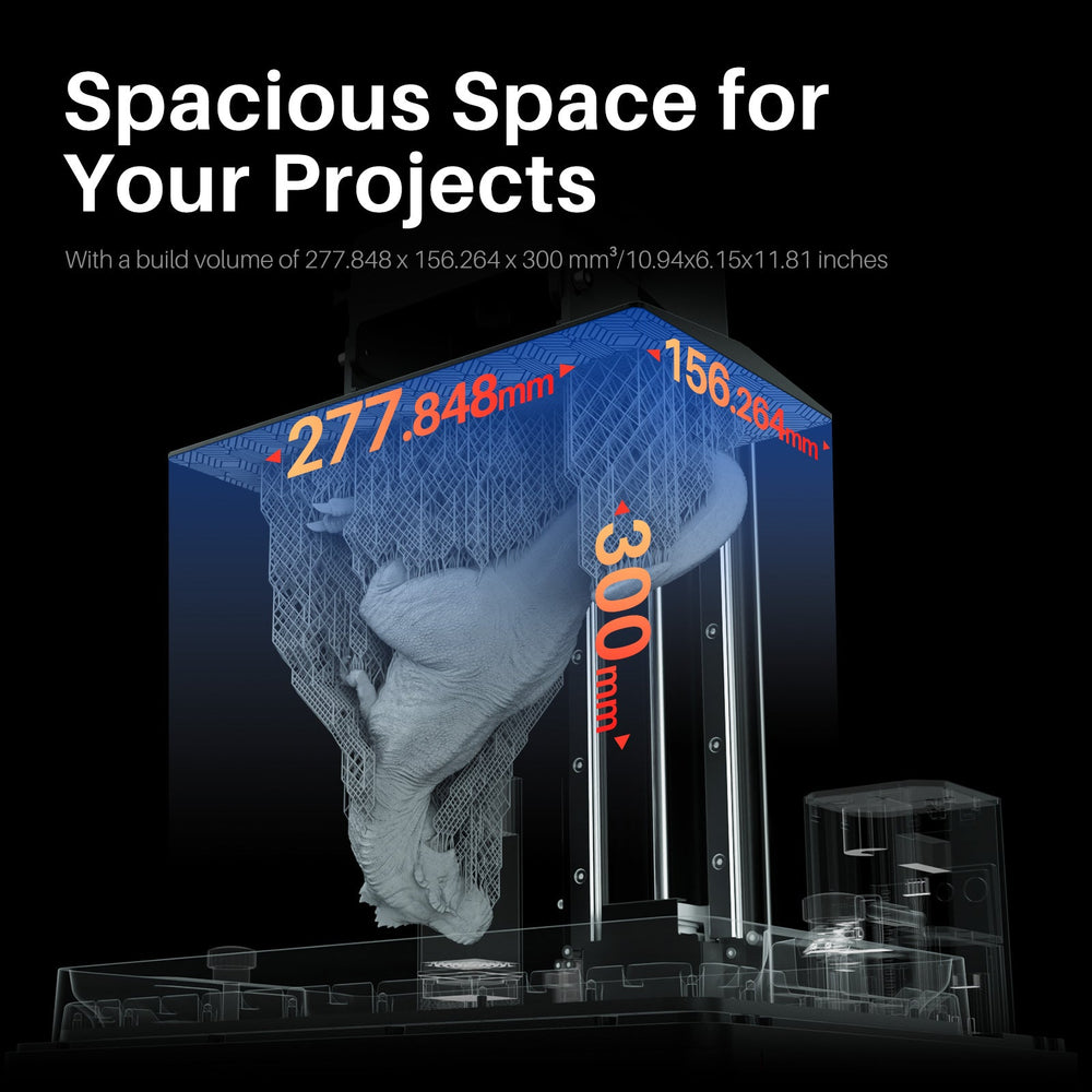 【Spacious Build Volume】With a build volume of 277.848 x 156.264 x 300 mm³/10.94x6.15x11.81 inches, this provides you ample space for more ambitious projects. You can print larger models or multiple parts in a single batch, making it ideal for professional or commercial use.