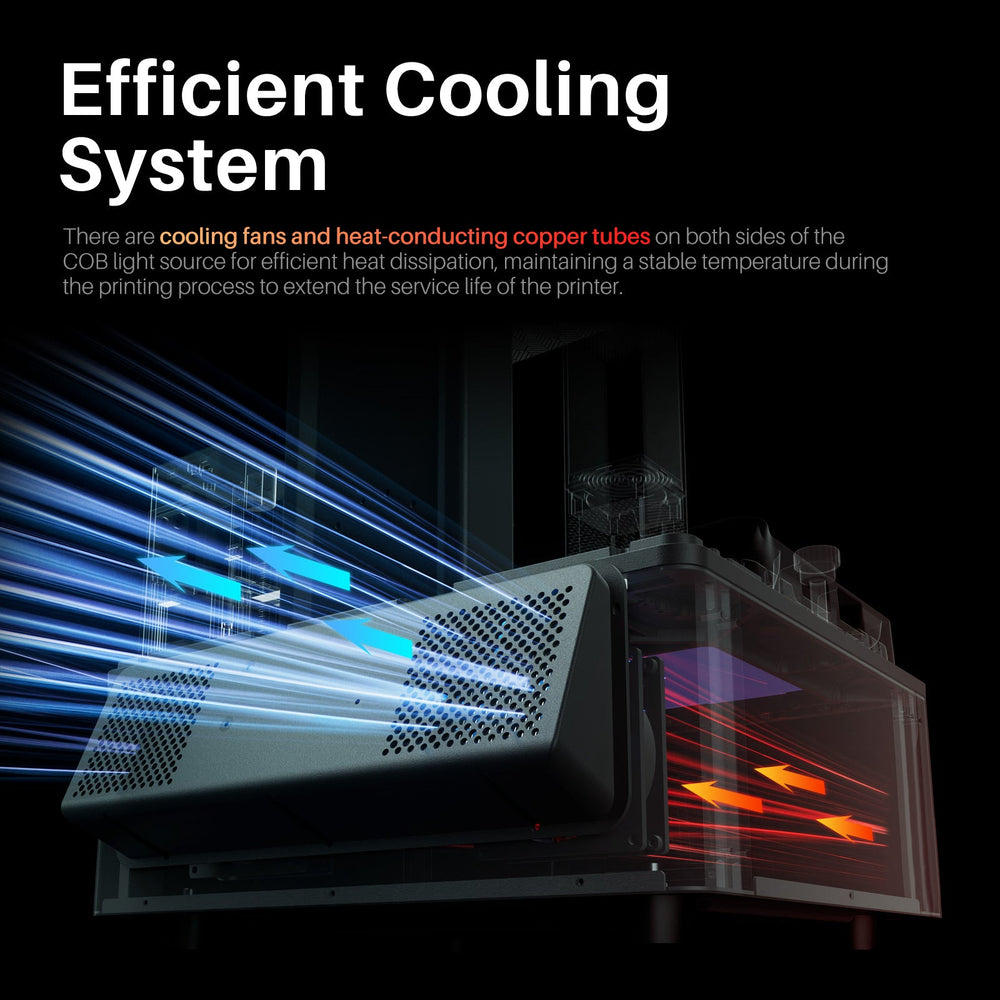 【Efficient Cooling System】There are cooling fans and heat-conducting copper tubes on both sides of the COB light source for efficient heat dissipation, maintaining a stable temperature during the printing process to extend the service life of the printer.