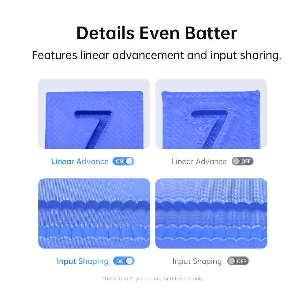 [1] Compared to products an average printing speed of 50mm/s, data from Anycubic Lab, results are for reference only