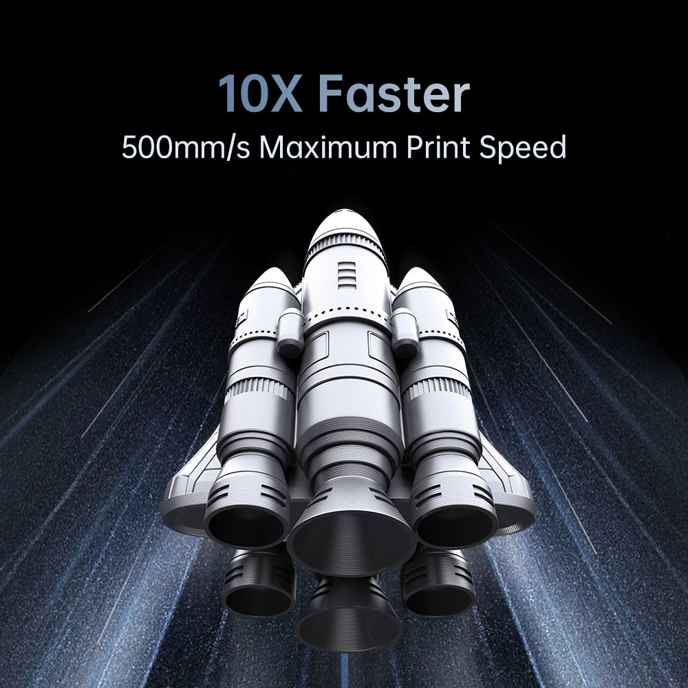 Compared to mainstream FDM 3D printers, the printing speed has increased by 10 times. Larger model creation, time-saving, and energy-efficient.