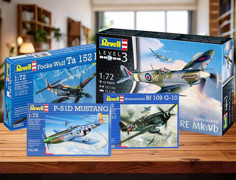 Vier legendäre Jagdflugzeuge aus dem Zweiten Weltkrieg – vereint in einem einzigartigen Bundle für alle, die Geschichte im Maßstab 1:72 lebendig machen wollen. Mit diesem Set holst du dir nicht nur detailgetreue Modellbausätze nach Hause, sondern tauchst auch tief in die Luftfahrtgeschichte ein. Du willst bauen, sammeln, gestalten – ohne auf Qualität zu verzichten? Dann ist dieses Bundle genau das Richtige für dich. Ob für deine Vitrine oder als gemeinsames Projekt: Hier steckt jede Menge Wert, Inhalt und Faszination drin.