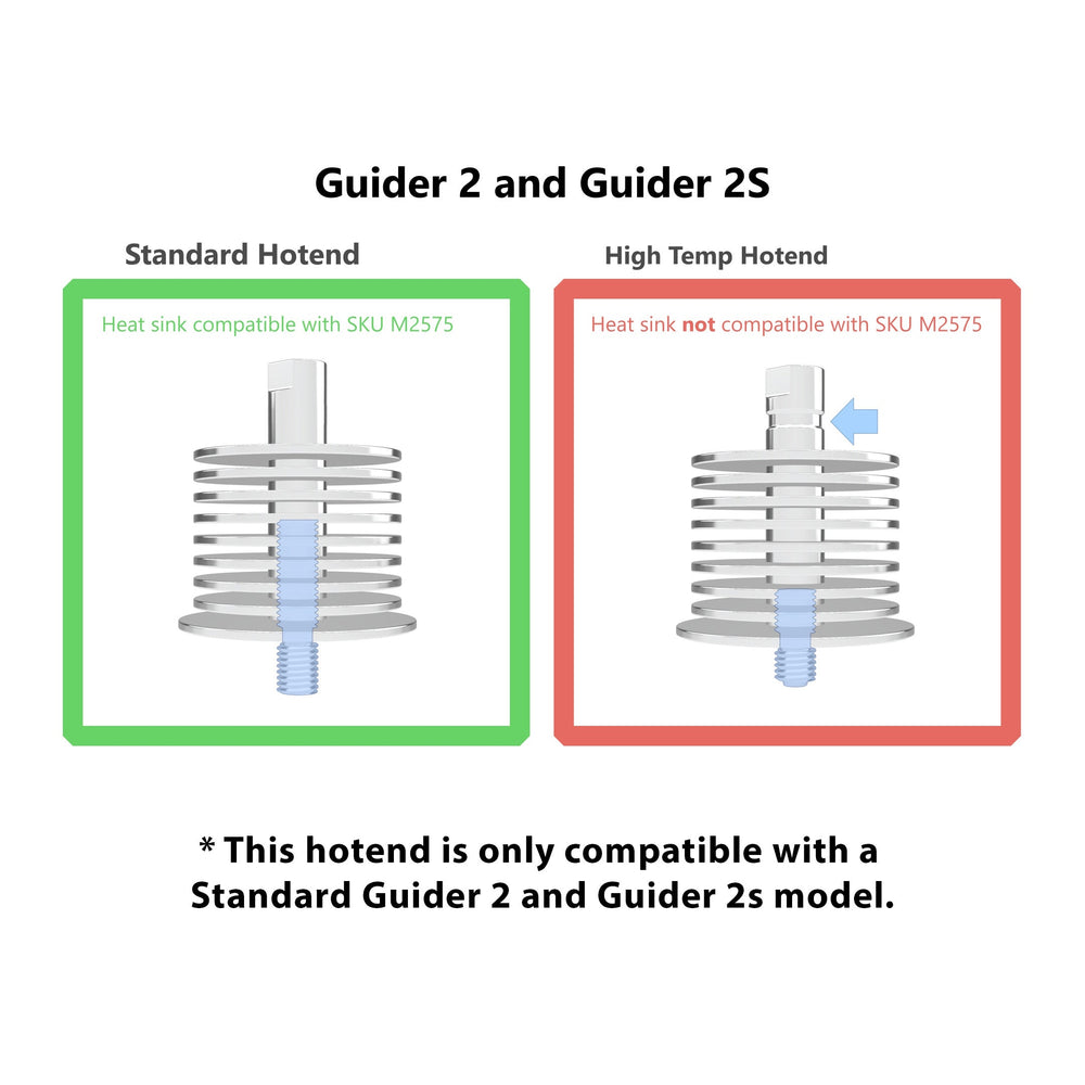 This is an all metal hotend upgrade kit for Flashforge Finder and Flashforge Guider 2. All metal hotend will let you print at much higher temperature than possible with original PTFE lined one. Another benefit of an all metal hotend design is more consistent melt chamber control. During slow extrusion rate, in PTFE lined hotend, transition zone from solid to molten plastic tends to creep upward creating more stringy prints. With all metal design a transition zone is always constant, being located right at the heat break. With fast extrusion rate, PTFE tube doesn't have enough thermal conductivity to properly melt all the plastic coming out. All metal hotend solves this problem, plastic is surrounded by thermally conductive nozzle throughout its length.