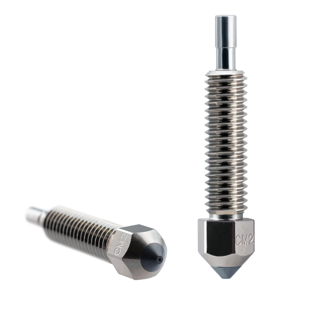 Micro Swiss CM2™ Nozzle is an ideal nozzle for all applications. Core of the nozzle is made of high-temperature Copper Chromium Zirconium and plated with an Electroless Nickel Plating. This special alloy retains its strength at much higher temperatures compared to a regular copper alloy. The tip of the nozzle is made of M2 Hardened High Speed Steel and coated with a special nonstick nano coating.