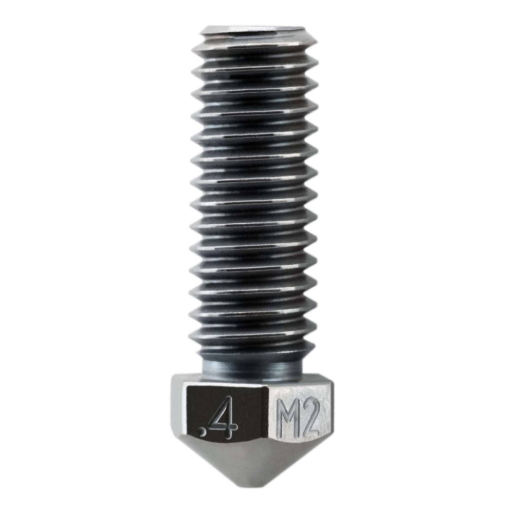 The M2 nozzle can operate up to 450°C without losing the hardness.