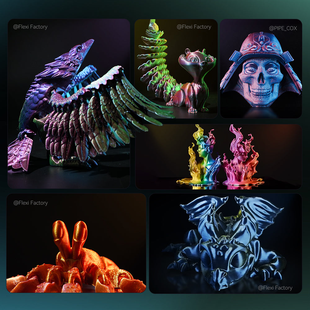 [Silky Texture, Smooth Finish] The Silk 3D filament delivers a silky, smooth texture with vibrant, eye-catching colors. Its dazzling surface requires no polishing, making every creation radiate artistic brilliance.