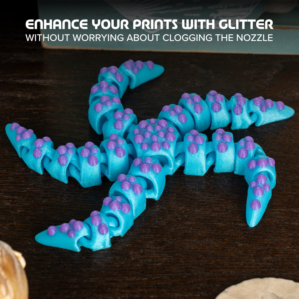 The pastel base paired with embedded glitter offers a distinctive look, making every print visually captivating from all angles. Light interacts with both the translucent base and the glitter, producing a dynamic, shimmering finish.