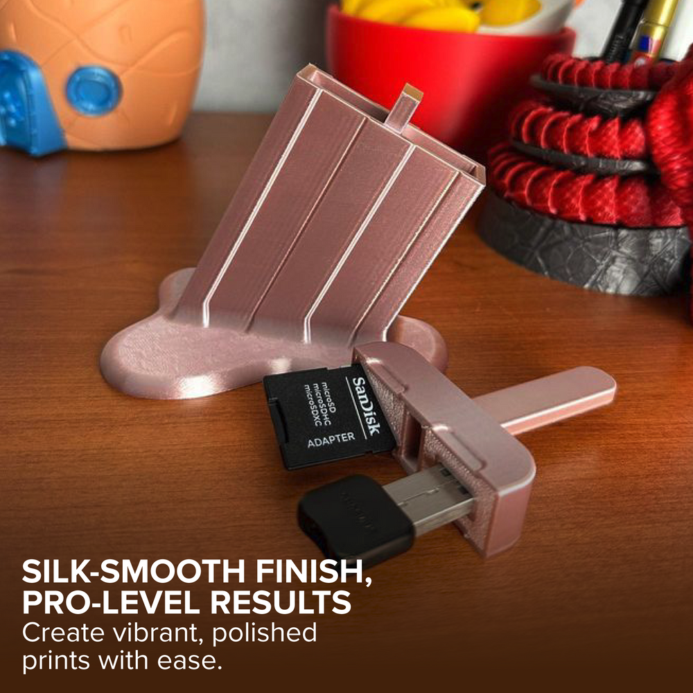 Our new silk formula solves brittleness and clogging while keeping a shiny, smooth finish. Prints faster and cleaner; up to 250mm/s with reliable results every time; ideal for 3D printing at any experience level.