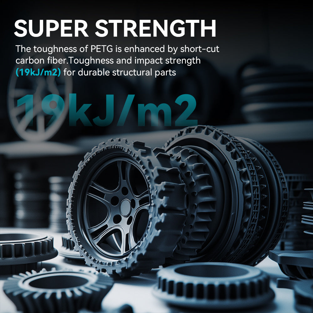 [Enhanced Mechanical Properties] The carbon fiber reinforcement significantly boosts PETG's toughness, achieving an impressive impact strength of 19 kJ/㎡. This ensures printed models are durable, resistant to cracking, and ideal for demanding applications.