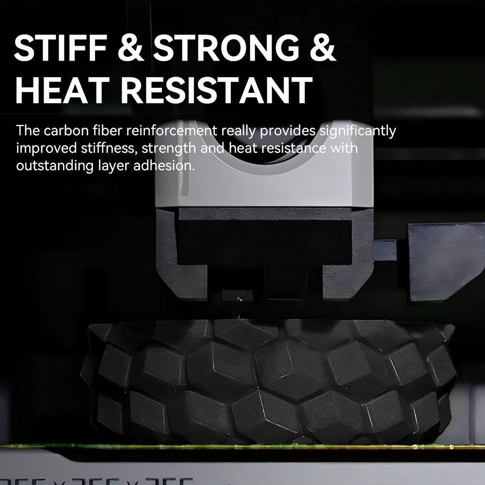 [High Heat Resistance] With a heat distortion temperature reaching 70°C, PETG-CF offers enhanced material strength and thermal stability, while retaining the impact resistance that PETG is known for.