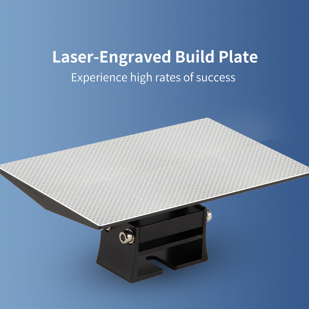 The new build plate has a texturized checkerboard pattern that dramatically improves adhesion and print success rate.