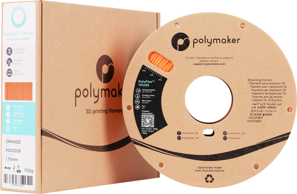 PolyFlex™ TPU95 is a thermoplastic polyurethane (TPU) filament engineered to work seamlessly with most desktop 3D printers, making flexible printing accessible to a wide range of users.
