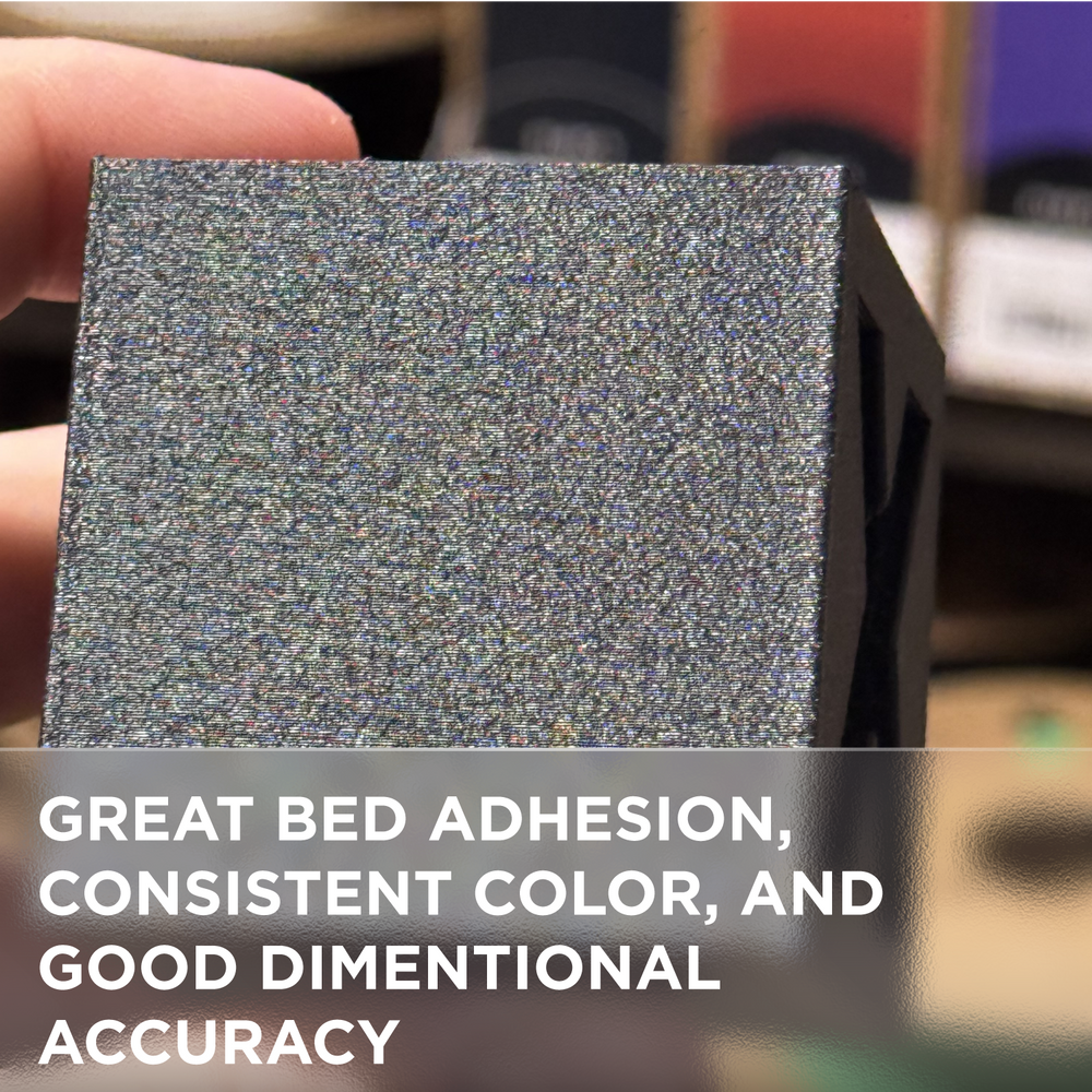 PolyTerra never disappoints. Good bed adhesion using a variety of plates to supports remove easily. Very reliable product.