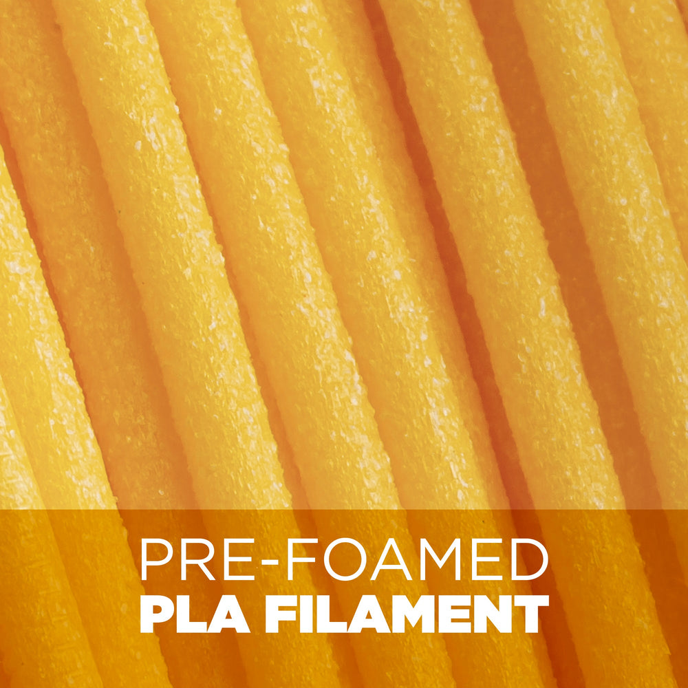 Discover PolyLite™ LW-PLA - a pre-foamed PLA filament designed for projects where weight matters most. Unlike active foaming filaments, PolyLite™ LW-PLA is foamed during manufacturing, ensuring a consistently low density without the need to adjust extrusion temperatures.