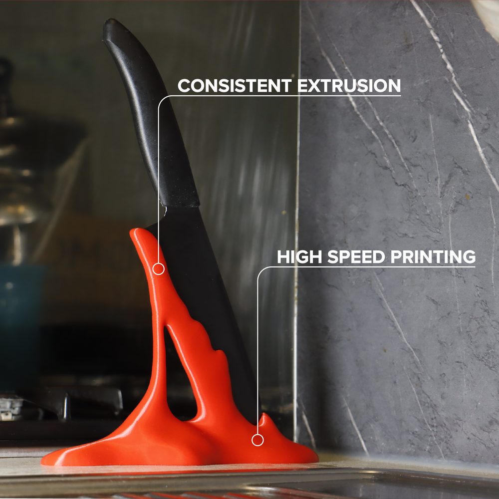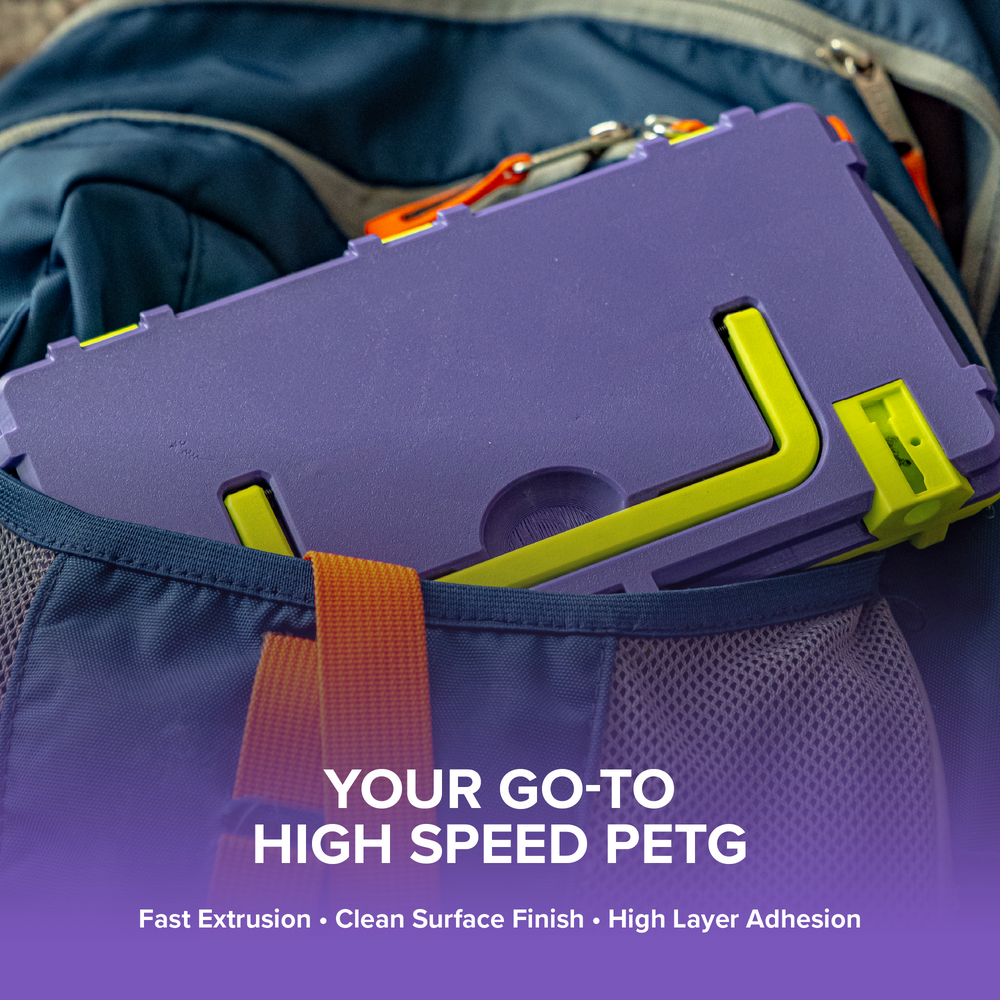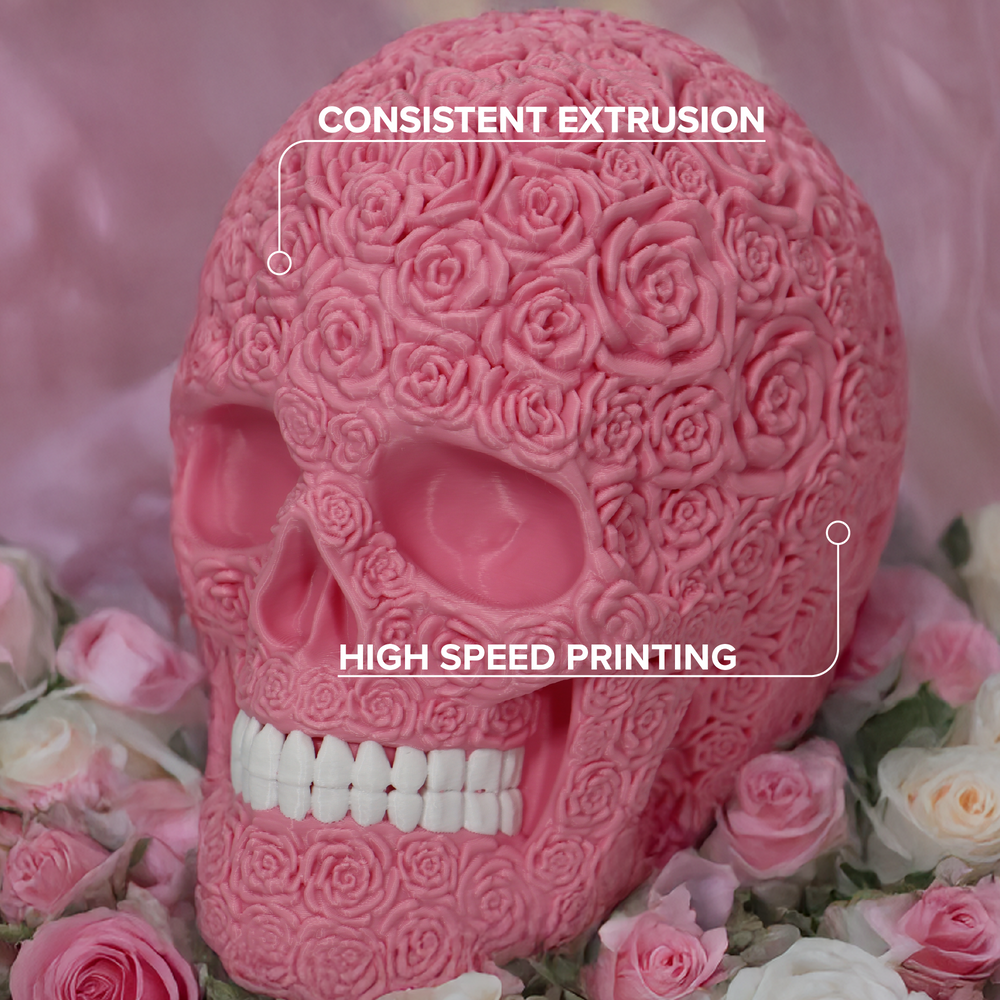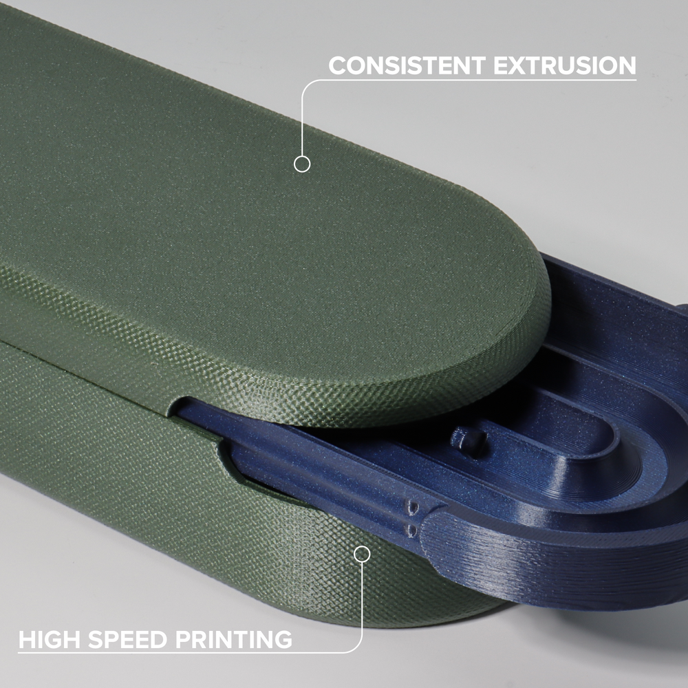 Engineered to print faster without losing strength or quality. Its high-flow formulation enables clean, accurate extrusion at speeds up to 300 mm/s, or over 500mm/s with high-flow nozzles while maintaining excellent layer adhesion, durability and surface finish.