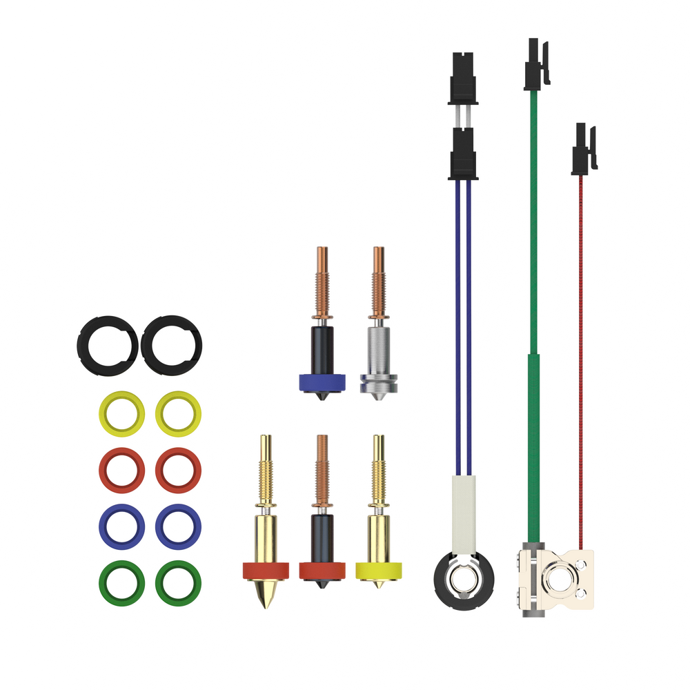 The ultimate experimental Hotside kit, matched printing capabilities to the Genius 400 pack with the added bonus of a 0.4mm Polycrystalline diamond tipped nozzle to unlock metal and ceramic filled 3D printing.