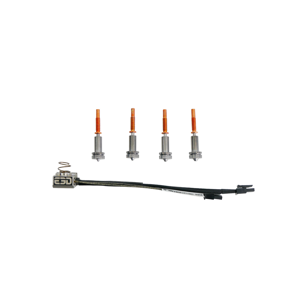 Fully customisable. Configure your ideal high temperature HotEnd. Choose between a PT100 or PT1000, as well as either a high precision heater cartridge (up to 400C) or high temperature heater cartridge (up to 500C).