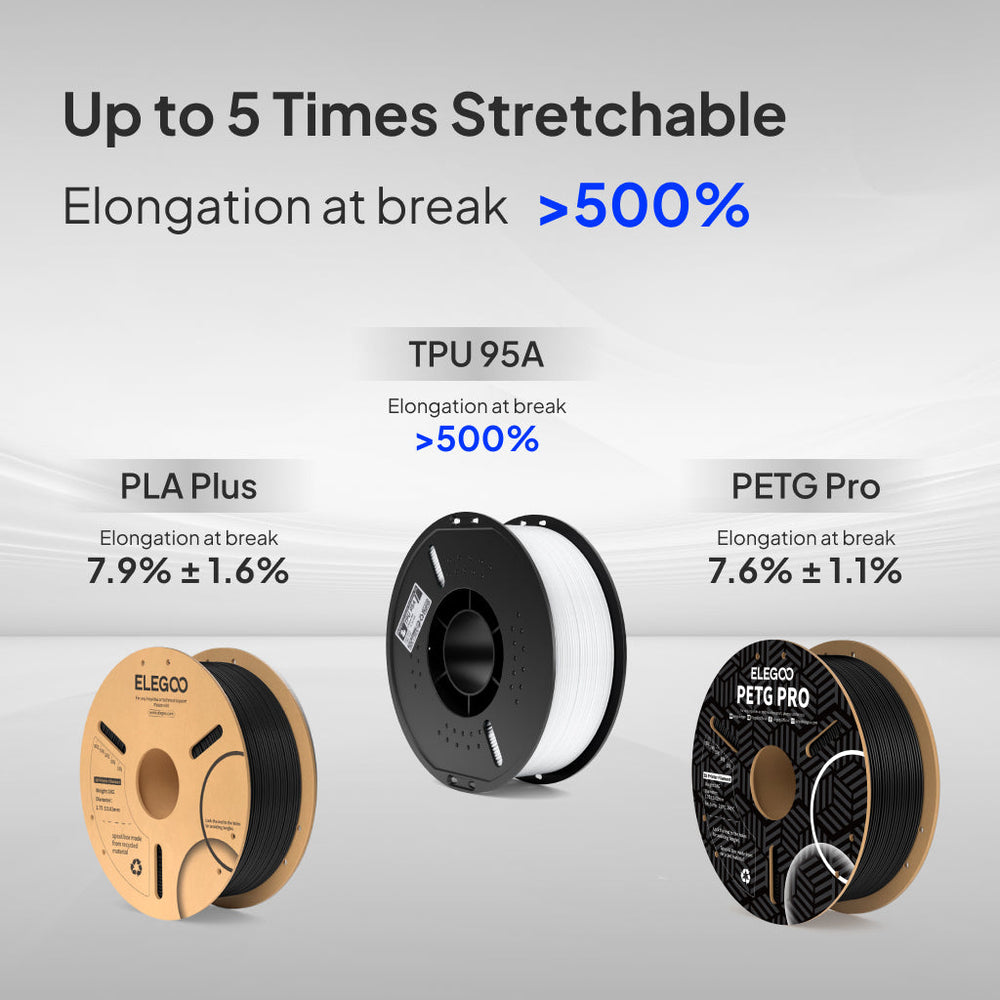 ELEGOO TPU 3D Printer Filament 1.75mm, 95A Shore Hardness Flexible TPU Filament, High Resilience and Elasticity, Dimensional Accuracy +/- 0.02 mm, 1kg Spool (2.2lbs)